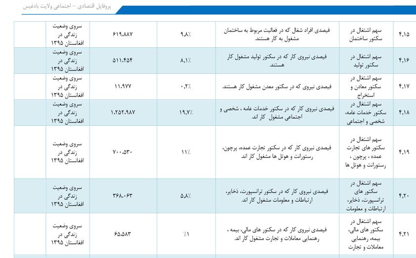آمار و ارقام فوق الذکر به خوبی بیانگر آنست که بزرگترین نیرو در دهات افغانستان زندگی مینمایند. و شغل اساسی شان زراعت و مالداری است. چنانچه در آمار فوق مشاهده میشود که در ولایت تخار 75% مردم مردم مصروف کشاورزی اند و در ولایت پروان 80% مردم به زراعت و مالداری مصروف اند، و از لحاظ اقتصادی 60% مردم تخار و 77% مردم پروان مستقیماً وابسته به زراعت میباشد.